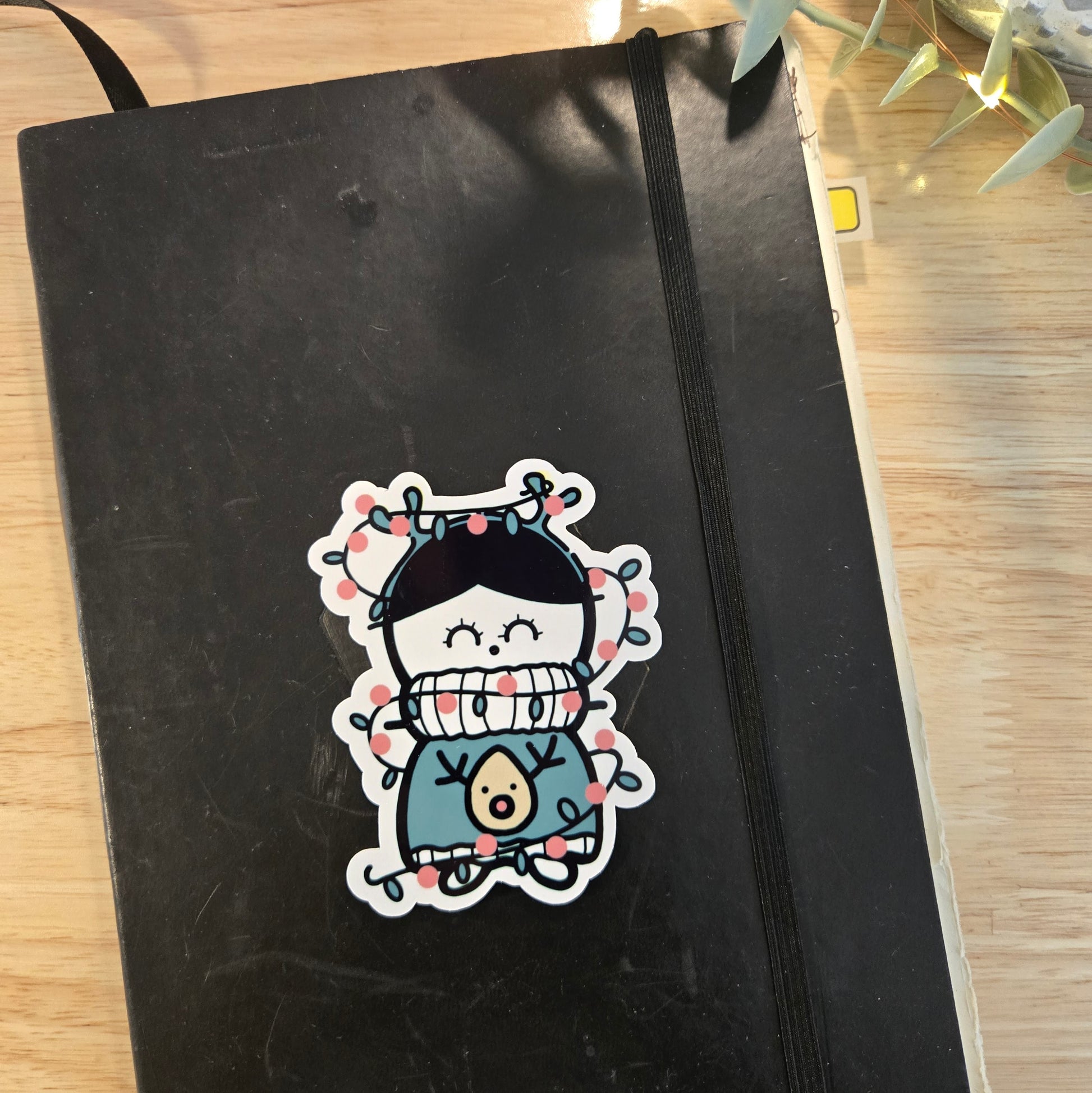 De la collection CHANDAILS MOCHES, cet autocollant individuel est imprimé sur un papier de vinyl et est fini d'un laminé mat