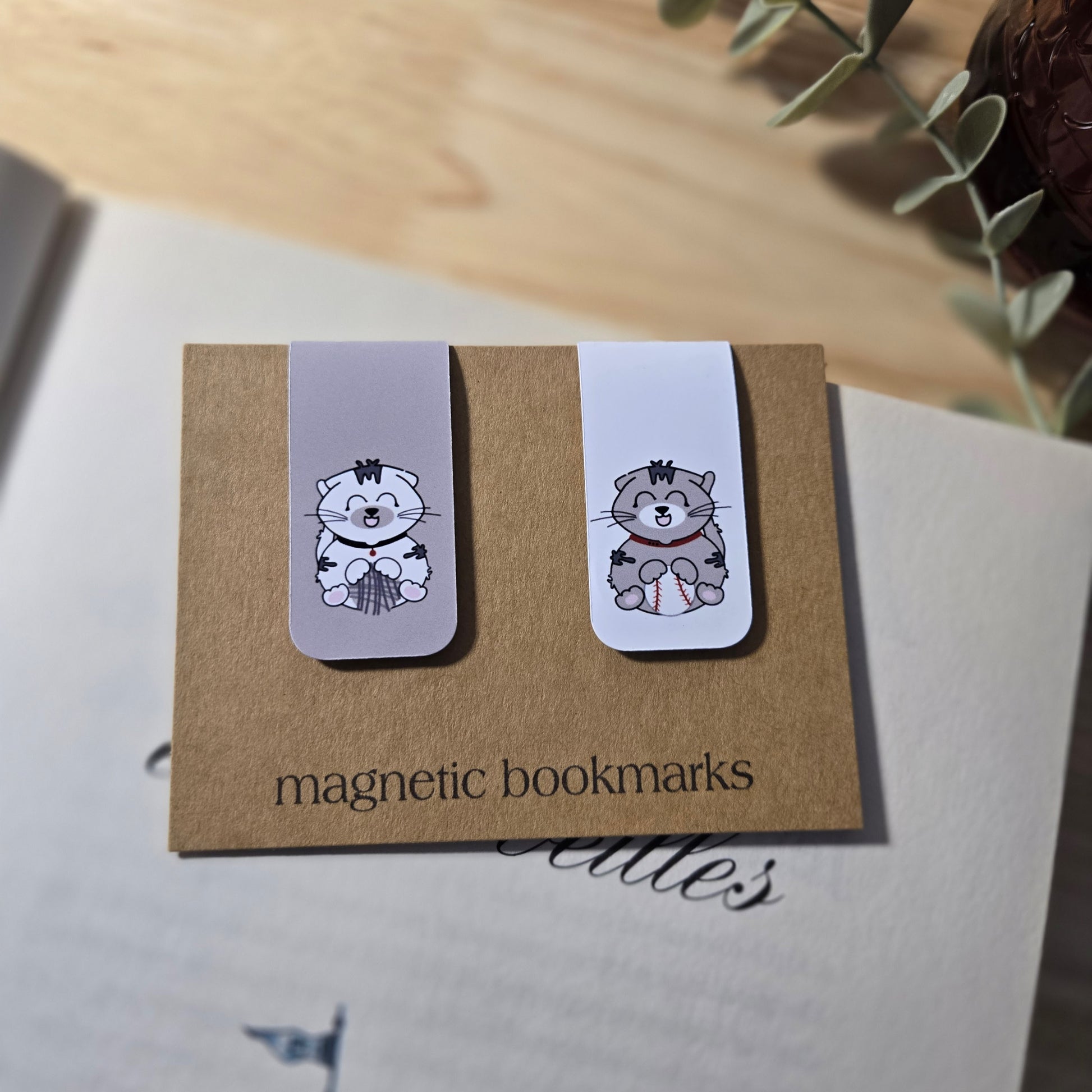De la collection LEOPOLD, ce set de deux petits signets magnétiques est imprimé sur un carton mat et blanc et laminé d'un côté. Il y a un aimant délicat au centre.