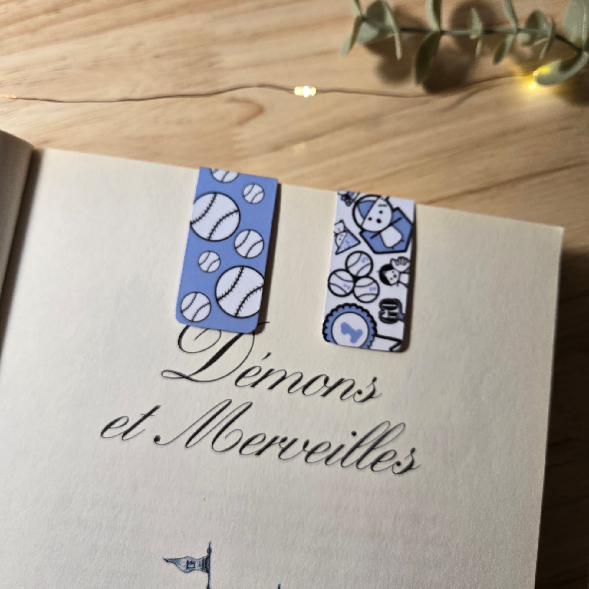 De la collection LES PETITES LIGUES, ce set de deux petits signets magnétiques est imprimé sur un carton mat et blanc et laminé d'un côté. Il y a un aimant délicat au centre.