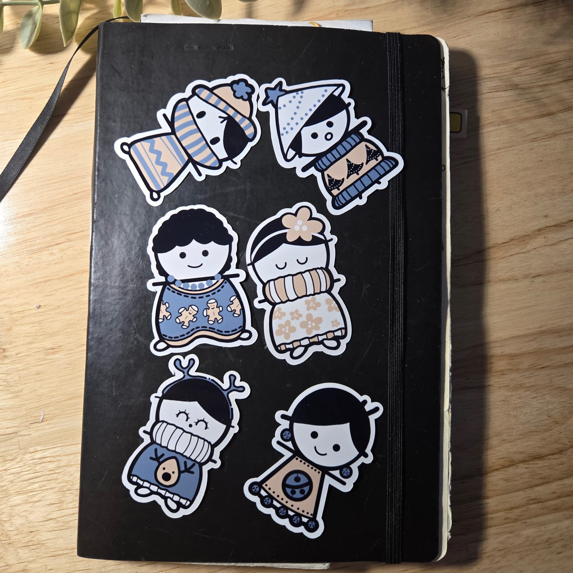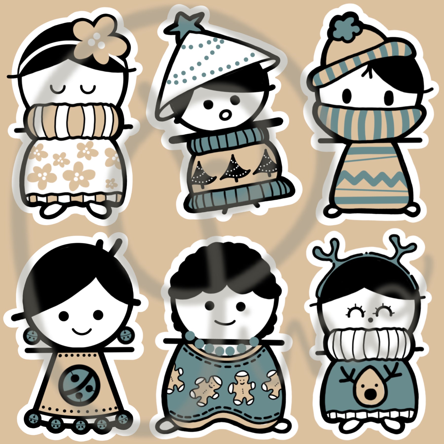 De la collection CHANDAILS MOCHES, cet ensemble de 6 autocollants individuels est imprimé sur un papier de vinyl et est fini d'un laminé mat
