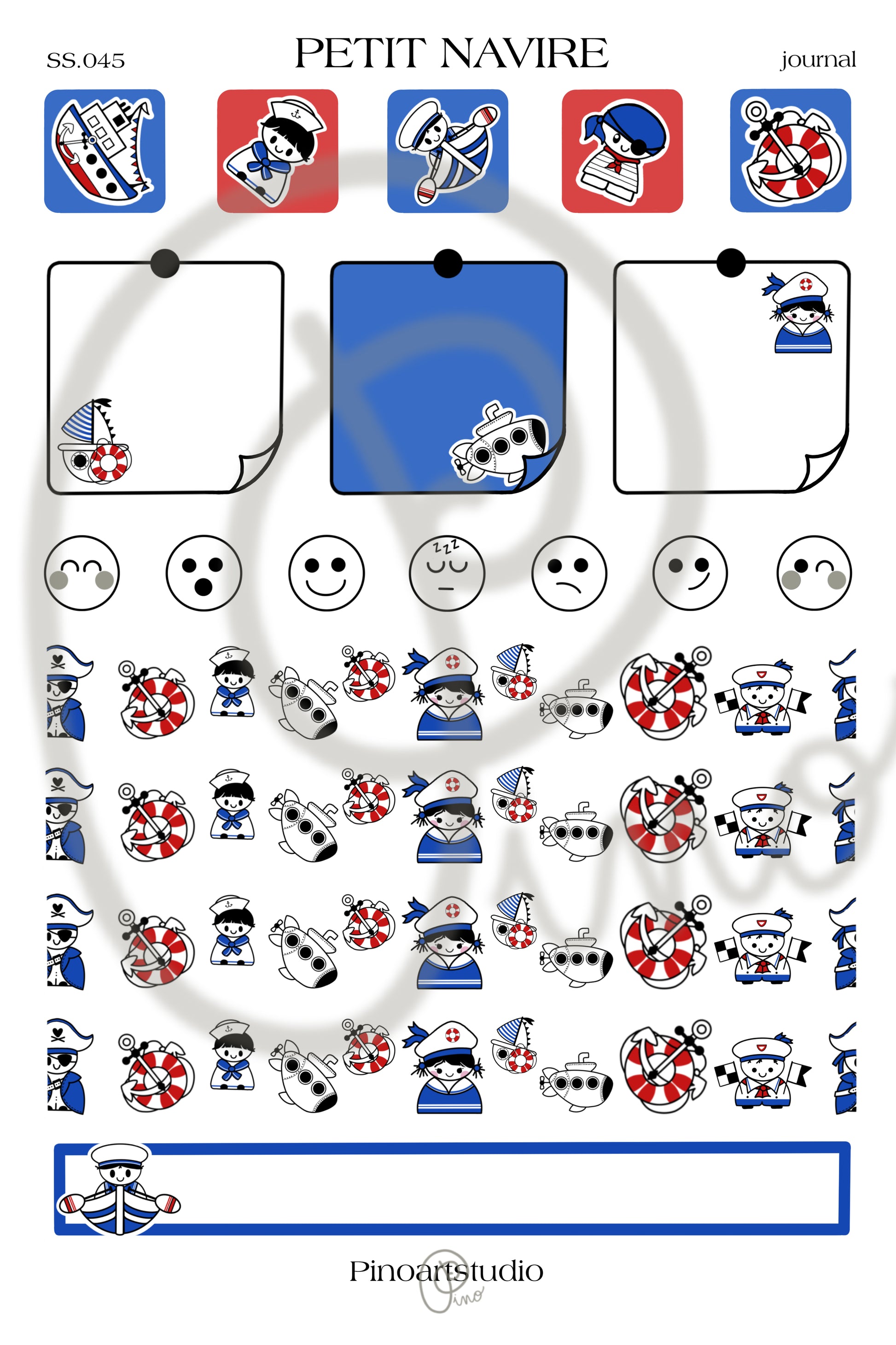 De la collection PETIT NAVIRE, ces minis autocollants sont imprimés sur papier de vinyl mat. Il sont parfaits pour décorer votre journal, votre agenda ou pour faire du scrapbooking. À coller partout où il vous fait plaisir!