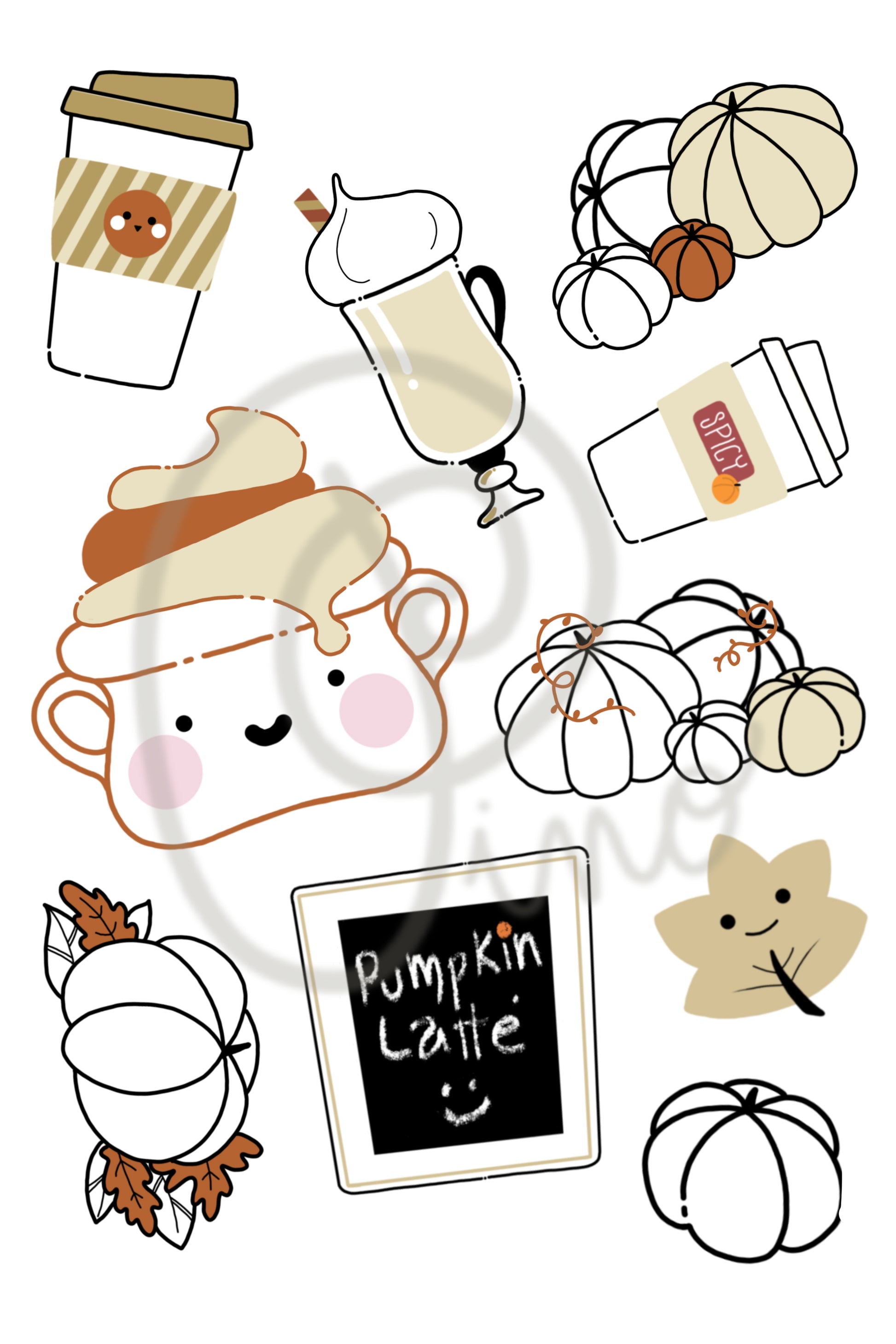 feuille d'autocollants - LATTÉ À LA CITROUILLE