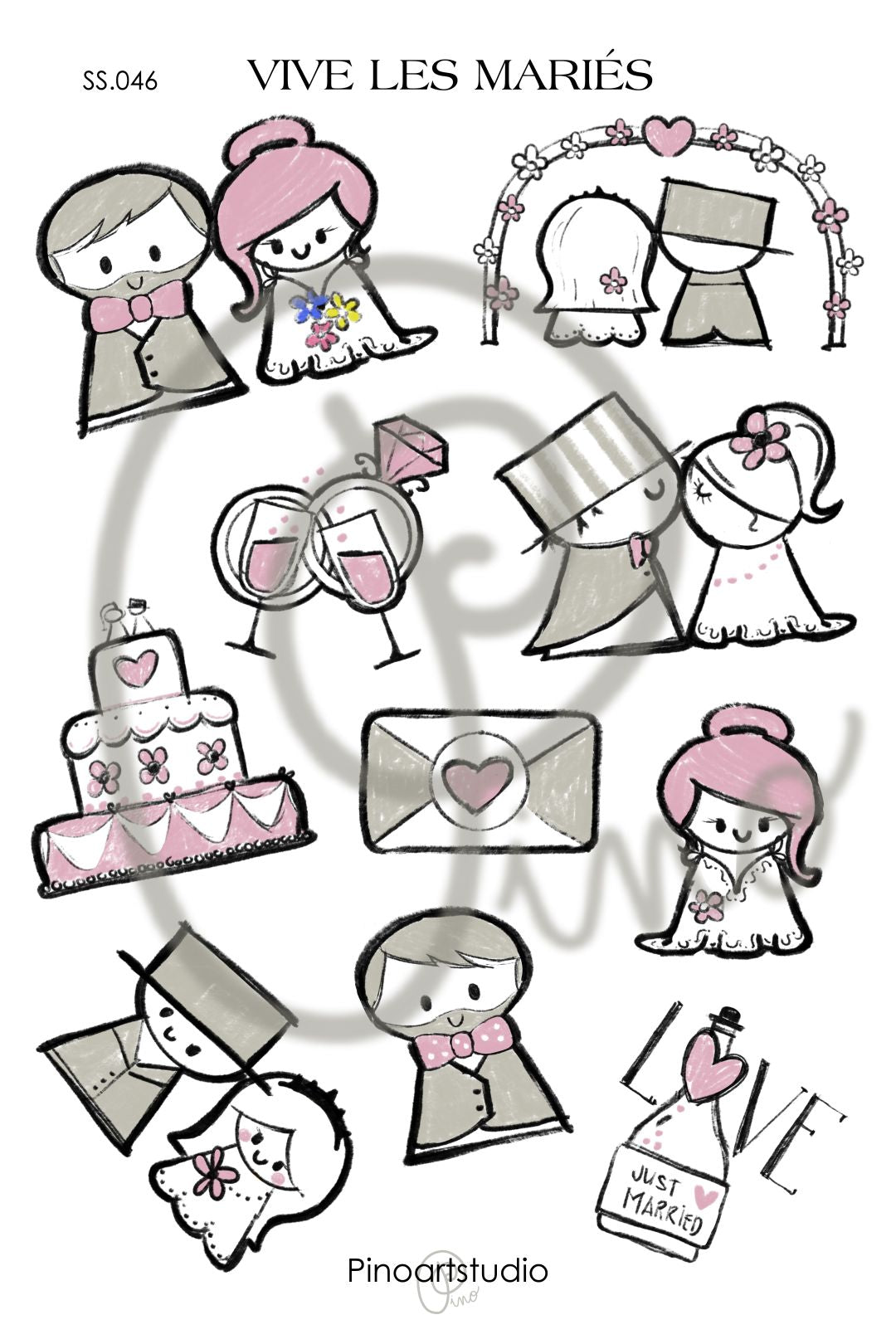 De la collection VIVE LES MARIÉS, ces autocollants sont imprimés sur papier de vinyl mat. Il sont parfaits pour décorer votre journal, votre agenda ou pour faire du scrapbooking.