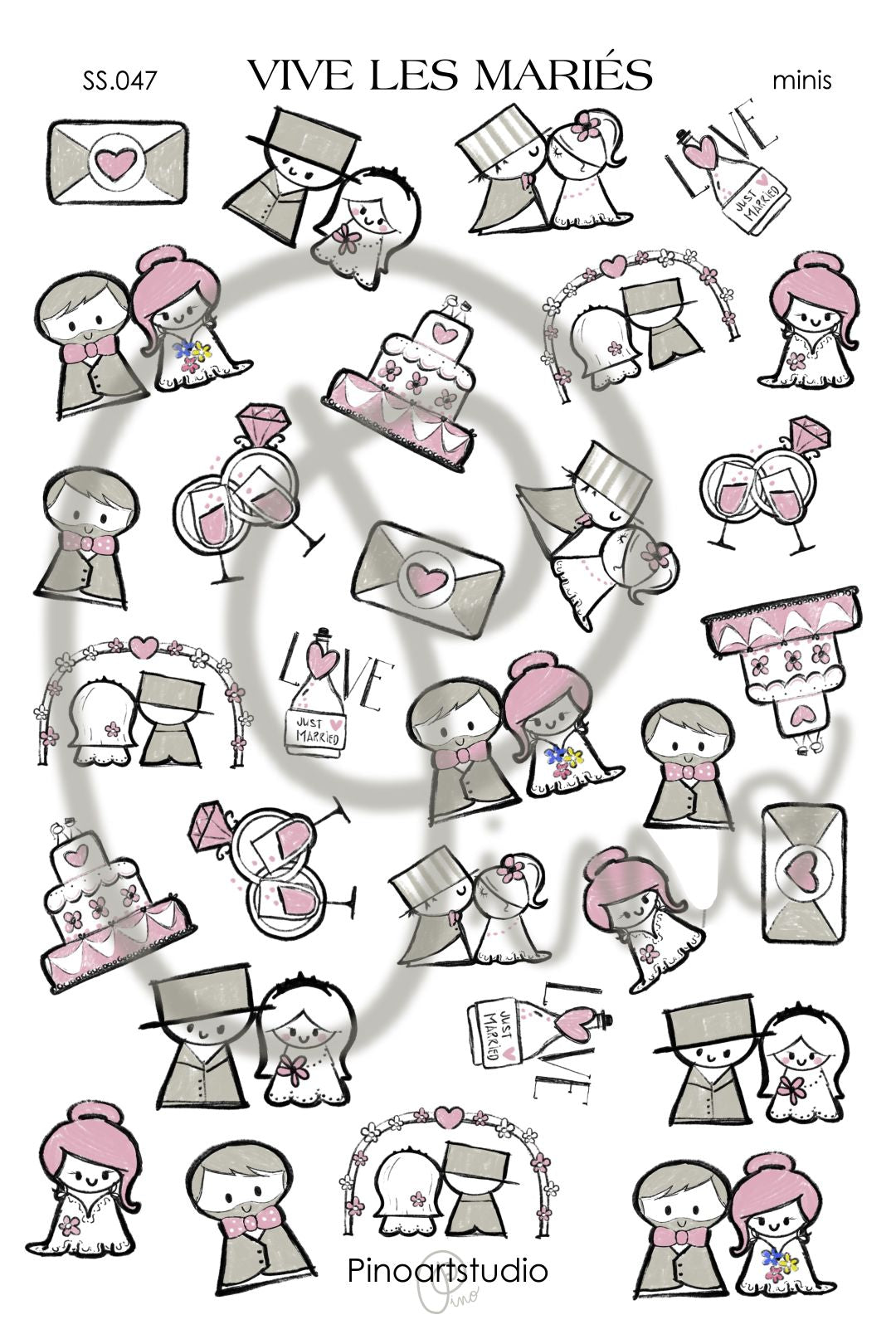 feuille d'autocollants - VIVE LES MARIÉS minis