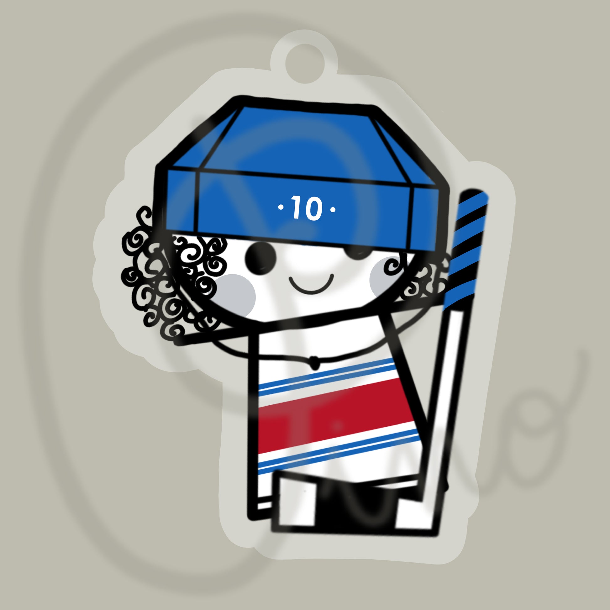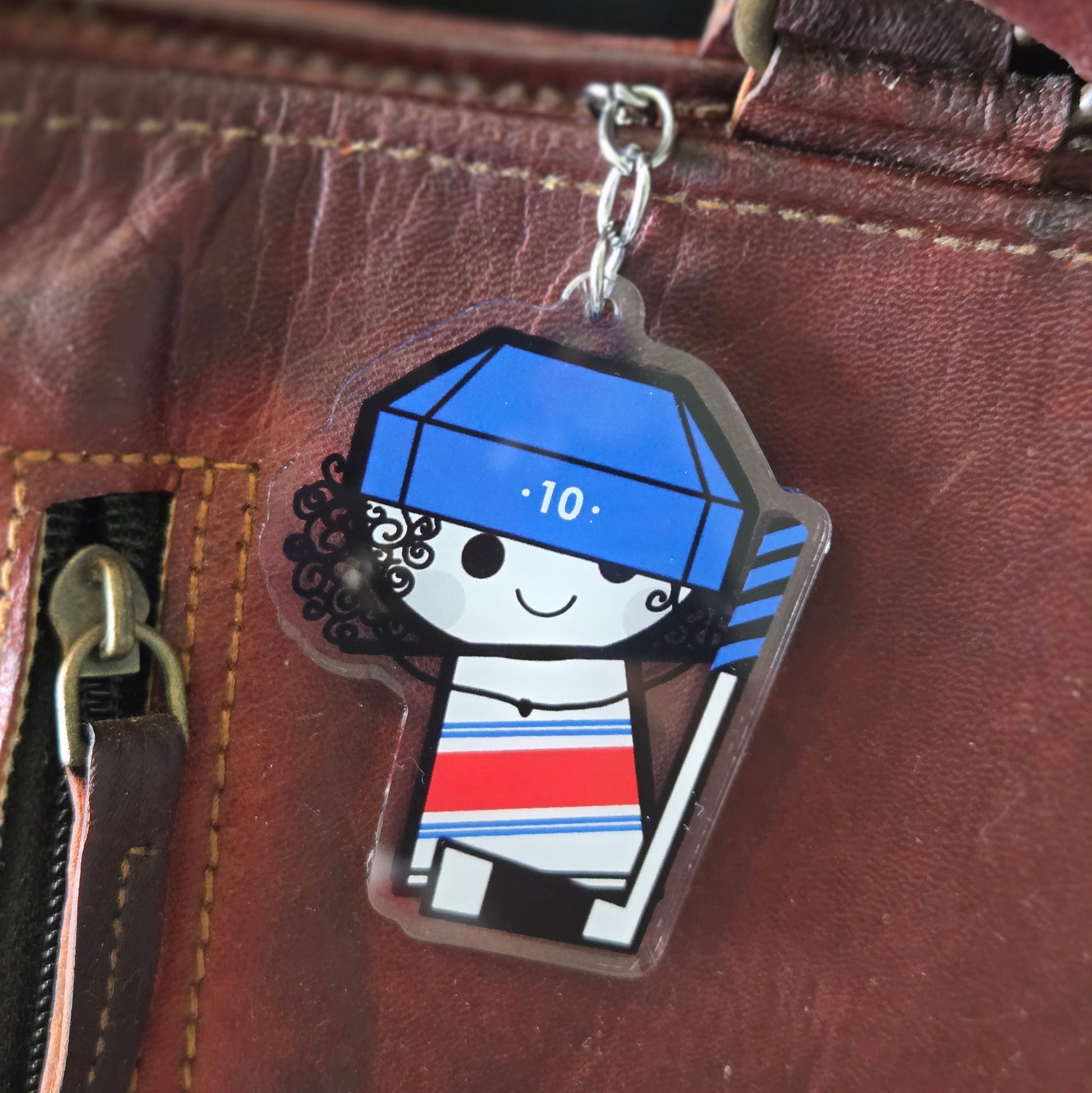 De la collection LA SOIRÉE DU HOCHEY ce porte-clés en acrylique avec image recto-verso, mesure 50 mm x 60 mm avec un anneau de 32 mm. Extrêmement léger.
