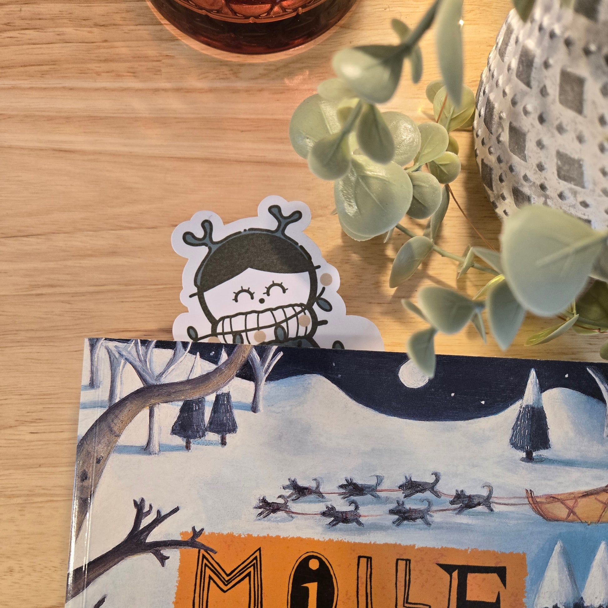 De la collection CHANDAILS MOCHES, ce signet est imprimé sur un carton blanc mat et est laminé d'un côté.